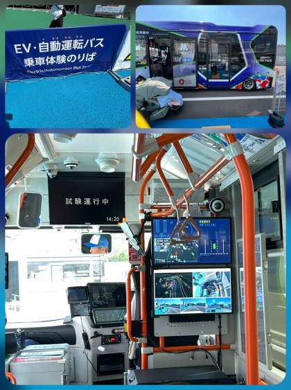 自動運転バスの乗車体験や、未来の乗り物を映像で体験します。