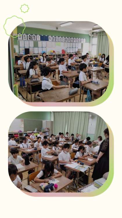 中学年の教室をのぞくと、真剣な表情で先生の話を聞いている姿が見られました。