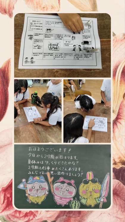 2学期を仲よく楽しく過ごせるようにと、班の友達とゲームを楽しんでいます。