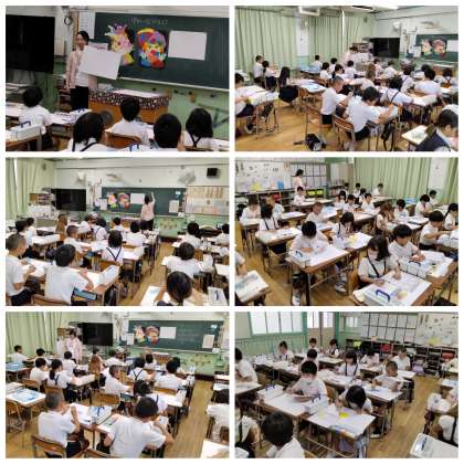 この変身させたオリジナル画用紙を切ったり、別の紙に貼ったりしてピエロを作るようです。