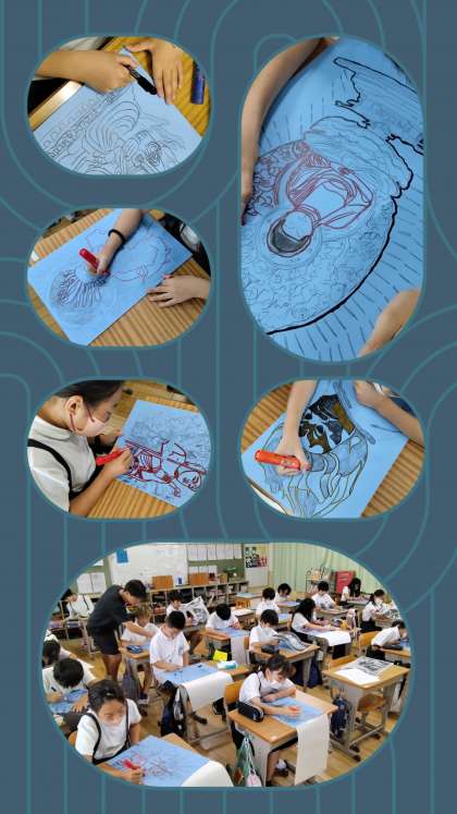 彫ったものを刷り上げた完成図をイメージしながら、ていねいに下絵をかいています。