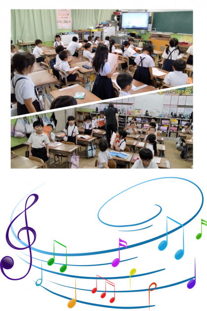 4〜5人ずつ、歌声を先生や友達に聴いてもらっています。 みんな、とても楽しそうに歌っています。