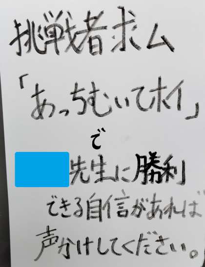 教室前に掲示しているのを見つけました。 ぜひ、〇〇先生に挑戦してみてください(*^^)v