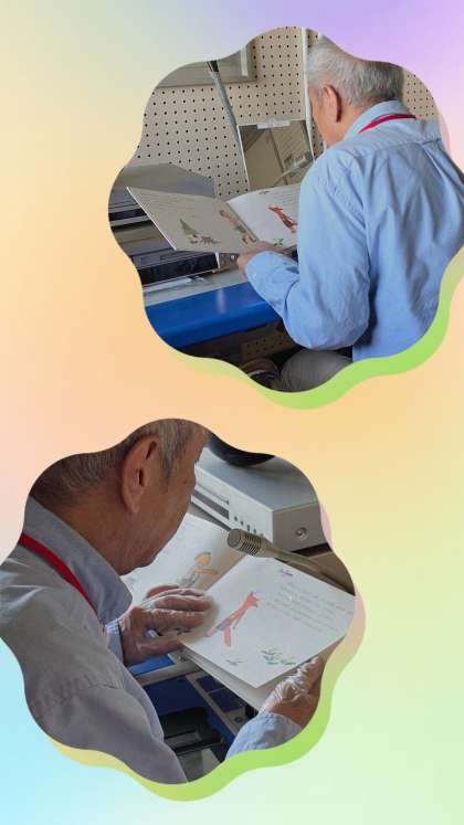 司書が、給食の時間を使って絵本の読み聞かせを行いました。