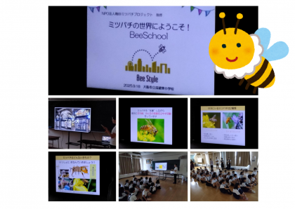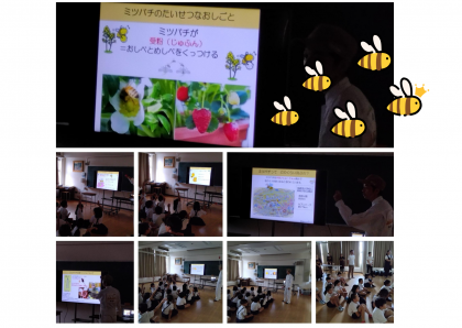 ゲラン株式会社とNPO法人梅田ミツバチプロジェクトから多くの方に来ていただき、出前授業をしていただきました。