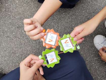 この日のために、みんなでつくった学級のキャラクターのアイテムが配られました。