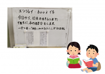 教室で見つけました。 友達のおすすめの本を手に、読書の秋を楽しみましょう(*'▽')