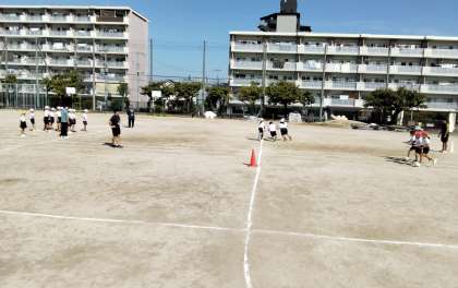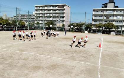 4年生が、団体競技「台風の目」の練習に取り組んでいます。