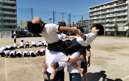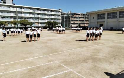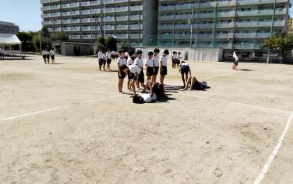 5・6年生が、心を一つにして団体演技に取り組んでいます。