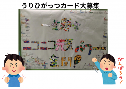 運動会のめあての周囲に、うりひがっつカードが貼られています。