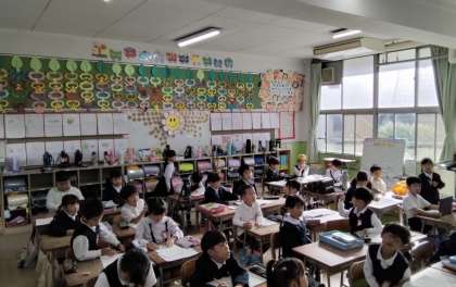 素敵なあいさつができると、教室背面に花が咲きます(*'▽')