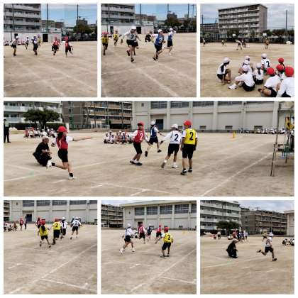 6年生は、4人の走者がそれぞれ、50m・100m・150m・200mと異なる距離を走る変則的なリレーに挑戦します。