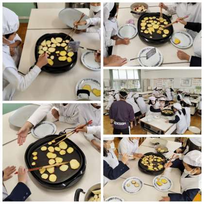 2年生が、生活科で育てたサツマイモを使って大学芋を作りました(*'▽')