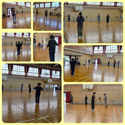 短縄を使った「いろいろな跳び方」についての伝達研修です。