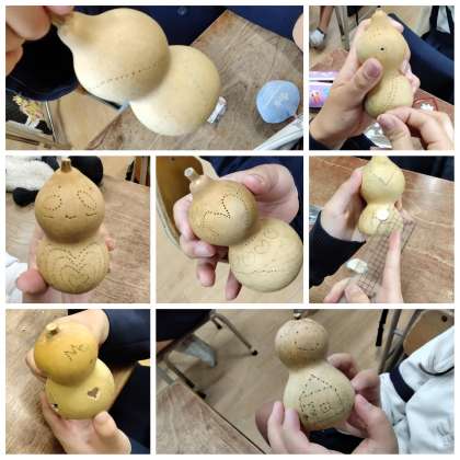 理科で観察を続けてきた「ひょうたん」を使って、ランプを作ります。