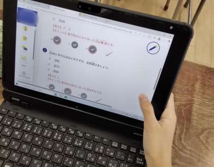 タブレット端末を使って、自学自習に取り組んでいます。