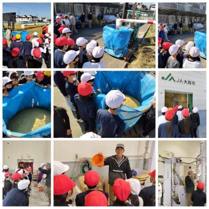 JA大阪市営農促進センターで、春に「田植え体験」をさせていただいた5年生が、今日は「稲刈り体験」をさせていただきました。