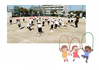 体育科の学習で、短なわを使った運動遊びが始まりました。