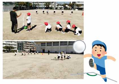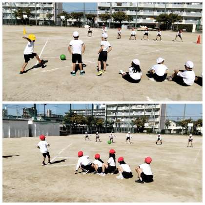 2年生がベースボール型ゲームの基本に挑戦しています。