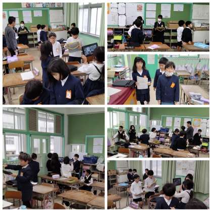 タブレット端末を使って、お店の人とのやり取りをイメージしながらインタビュー動画を撮影する練習などに張り切って取り組んでいます。
