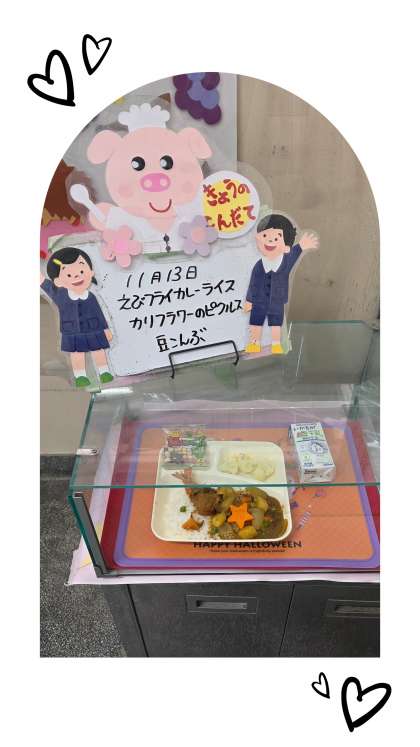 大好きなカレー(ラッキーにんじんも入ってます!)にエビフライまでついていて、子ども達大喜びで食べていました(*^^*)