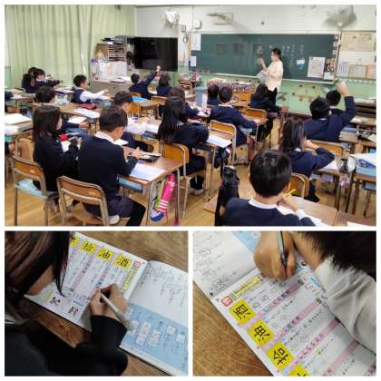 新出漢字の学習では、筆順・読み方(音・訓)・部首・使い方を確認してから書く練習をします。