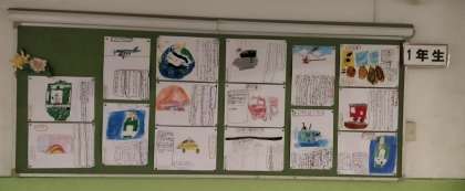 1年生が国語科で説明文「いろいろなふね」の学習したことをいかして、乗り物カードを書きました。