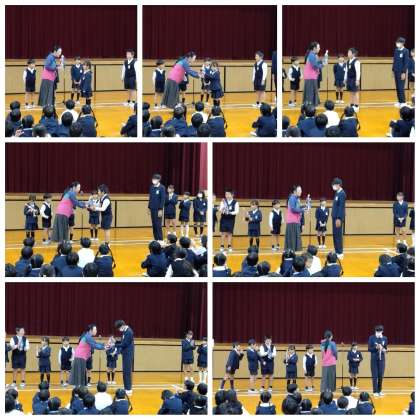 読書週間に実施した「辞書引き大会」の表彰を行いました。