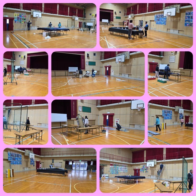 子ども達が下校した学校では、教員が協力して「作品展」の準備を進めています。