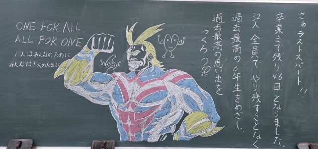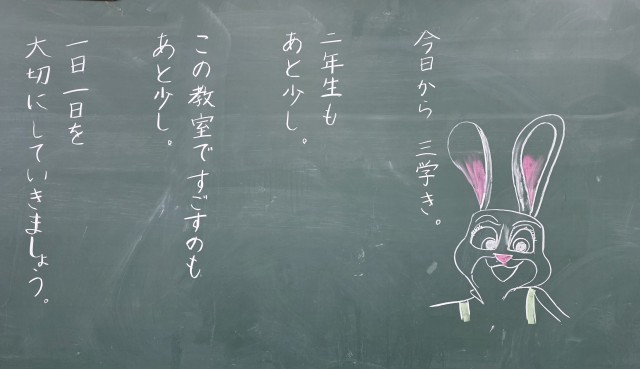 各教室の黒板には、担任からのメッセージが(*'▽')