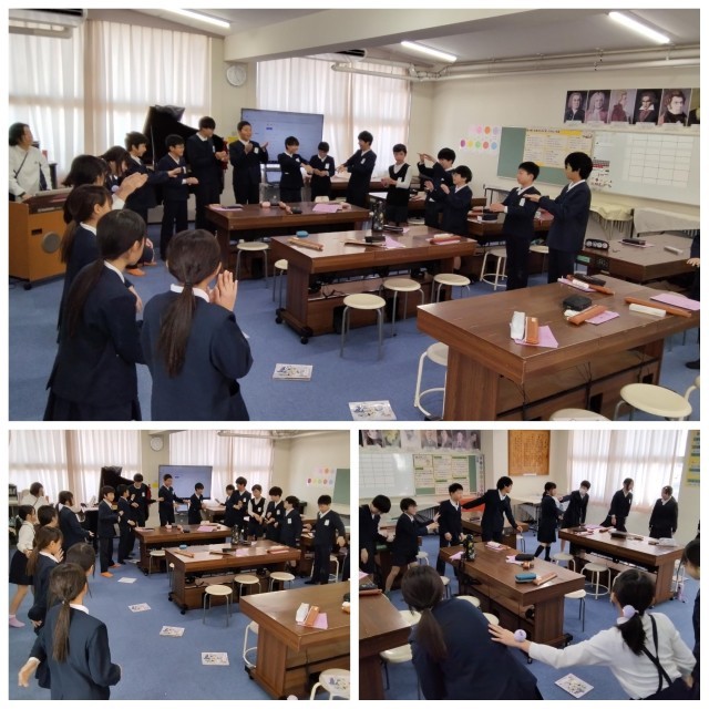 音楽の時間は、リズム遊びや発声練習を通して心と体をひらくことから始まります。