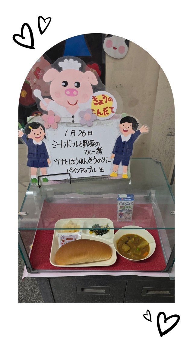 今日のメインは、子ども達から大人気のカレーとミートボールのダブル(#^.^#)