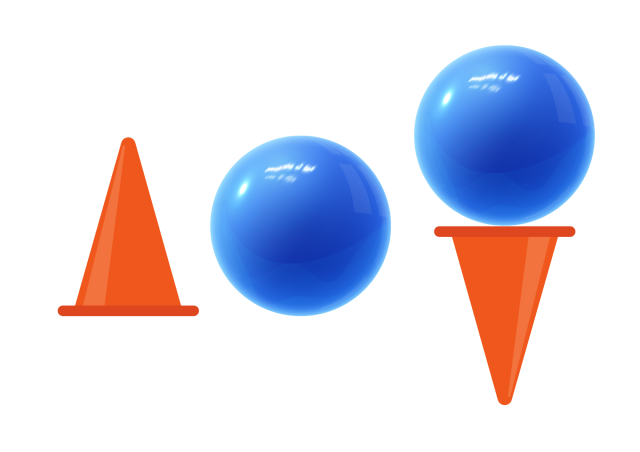 ミニ三角コーンを逆さにし、そこへボールを載せて運びます。