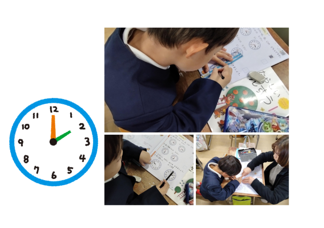短針は何時、長針が何分を表していることを学習しました。