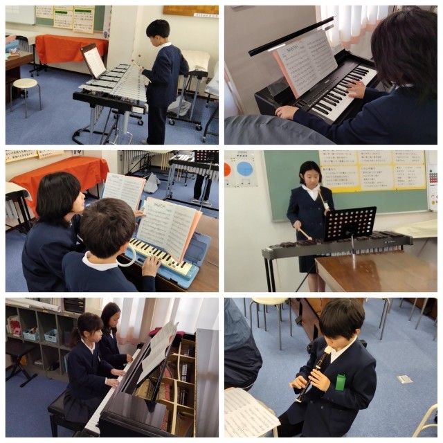3月にある「6年生を送る会」で合奏のプレゼントをする5年生。