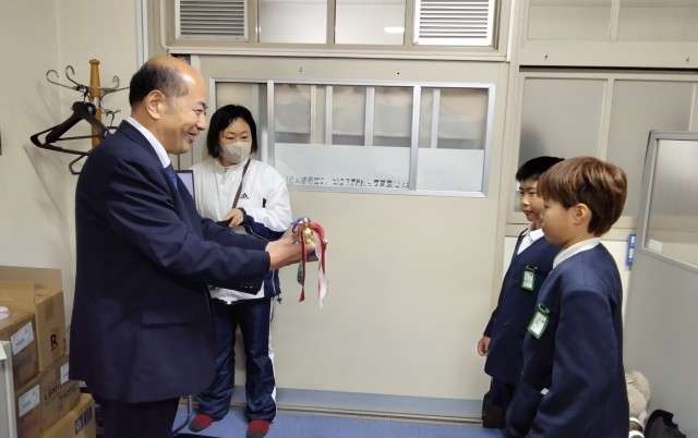 1年生・2年生・5年生が【読書の木】の表彰を、東中平野区長さんからしていただきました。