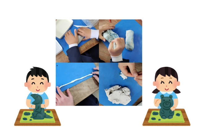 粘土遊びを通して、手指の感覚や力加減を養ったり、想像力を形にしたりします。
