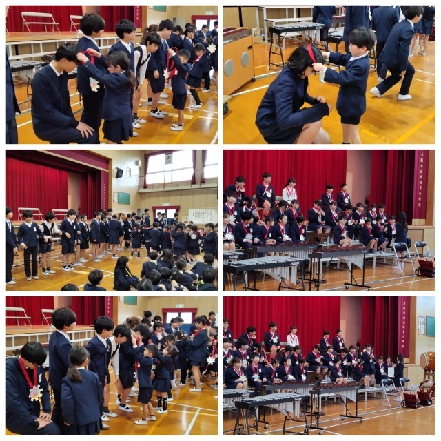 各学年が、6年生への感謝の気持ちを演奏やよびかけで表しました。