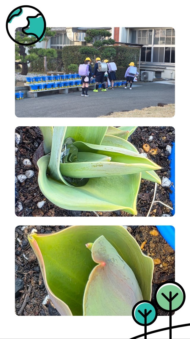 登校してくると、チューリップの球根の成長具合を確認するのが1年生のルーティンになっています。