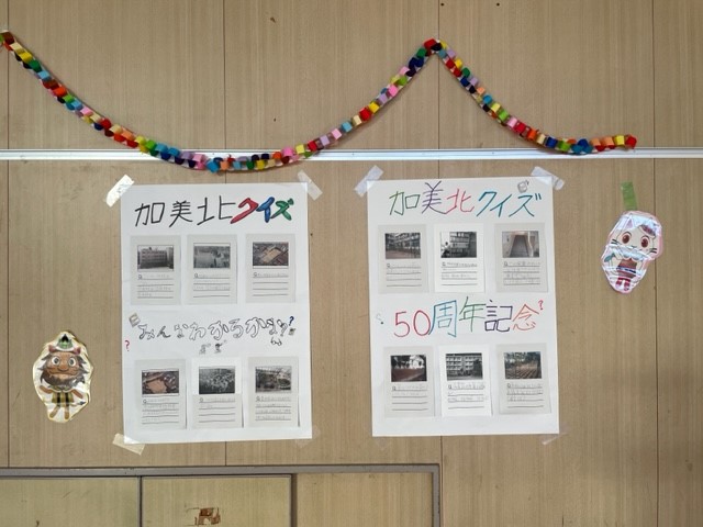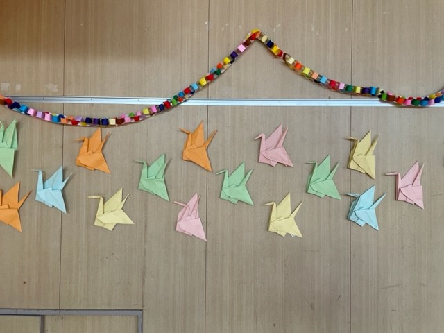 学年で分担し、おめでとう集会の会場を飾り付けました。