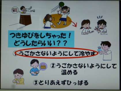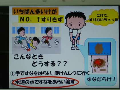 「すりきず」や「つきゆび」をしたときについてのお話も聞きました。