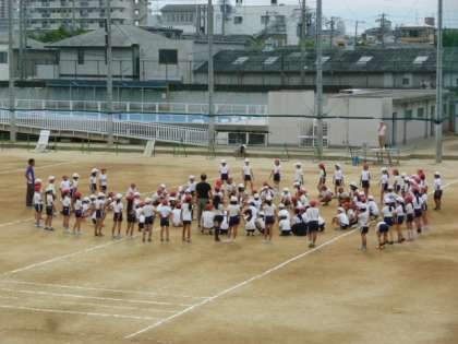5年生の団体演技とリレーのバトン渡しの練習です。練習は、始まったばかりですが、子ども達は、どんどん上達していきます。