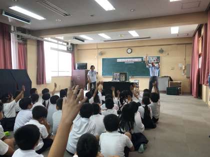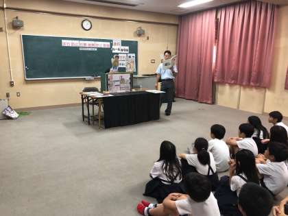 中央少年サポートセンターの方を講師に「非行防止、犯罪被害防止」について子どもたちにペープサートで分かりやすくお話をしていただきました。