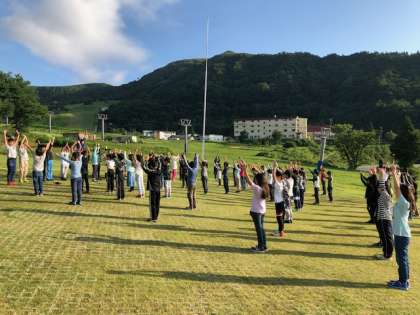 爽やかな快晴、朝の集いで全員が元気に体操しました。
