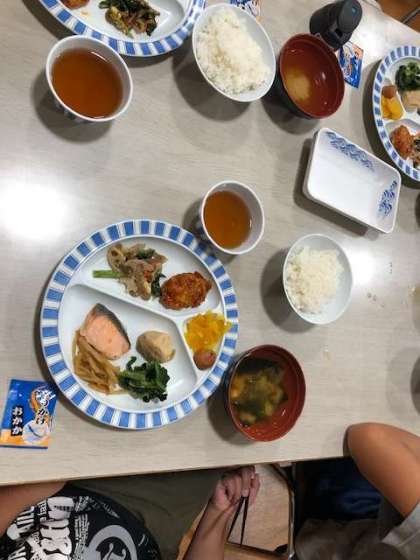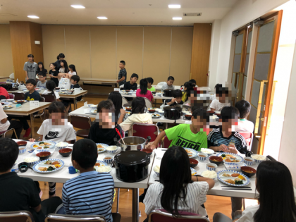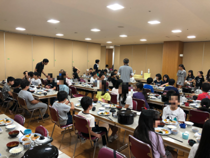 朝食の様子です。2日目になり食事班のまとまりも出てきました。
