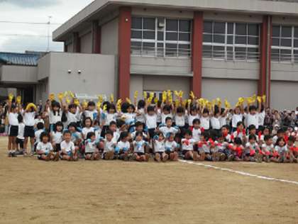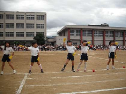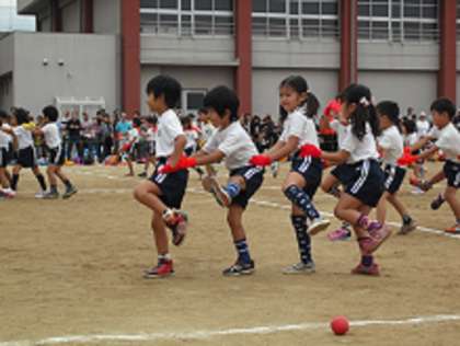 小学校ではじめての運動会、元気いっぱいがんばりました。