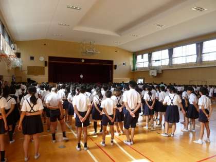 生活指導部長の先生の話は、子ども達に配布している「夏休みのくらし」の内容でした。命や体を大切にするために書いてある4つのことを、具体的に話されました。おうちでも、子ども達と一緒によんで、話し合ってください。