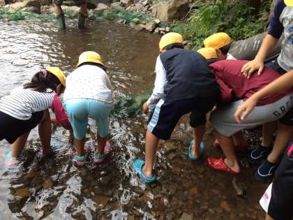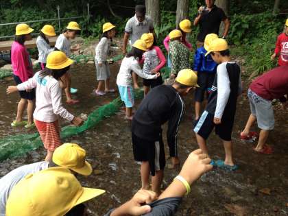 水は冷たいですが、子ども達は魚つかみにハイテンションです。楽しんでいました。