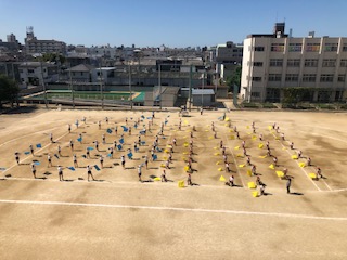 6年生は小学校最後の演技になります。団体演技の練習も講堂から運動場になり、本格的になってきました。さすが6年生、きびきびとした動きで取り組んでいます。
