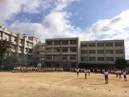 きょうの全体練習は応援団の練習と、閉会式の練習でした。
